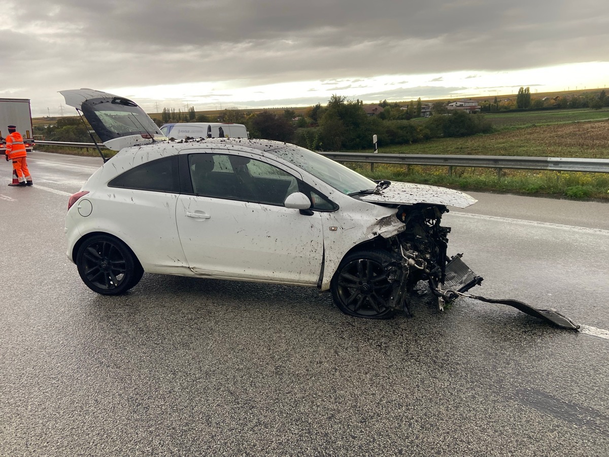 Gegen 08:47 Uhr meldeten Verkehrsteilnehmer der Polizeiautobahnstation Ruchheim einen verunglückten Pkw in Höhe Laumersheim.