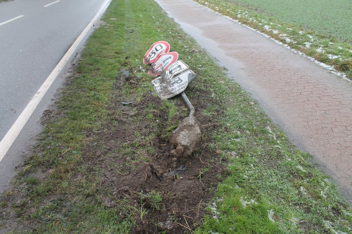 Die alarmierten Einsatzkräfte sicherten das beschädigte Verkehrsschild und nahmen den mutmaßlichen Unfall auf. Hinweise auf ein beteiligtes Fahrzeug fanden sich zunächst nicht. Das zurückgelassene Kennzeichen ließ jedoch vermuten, dass es sich nicht um einen Bagatellschaden handelte. Nach Abschluss der polizeilichen Maßnahmen blieb der Vorfall zunächst ungeklärt.