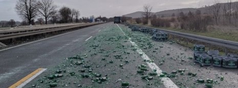 Insbesondere die zerbrochenen Glasflaschen machen die Reinigung der Fahrbahn aufwendig und zeitintensiv. Verkehrsteilnehmer werden gebeten, den Bereich weiträumig zu umfahren.
