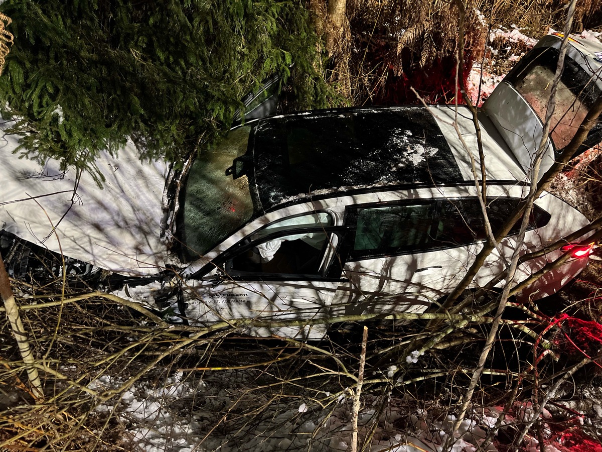 Der BMW-Fahrer durchfuhr eine Linkskurve, verlor jedoch aufgrund der glatten Fahrbahn die Kontrolle über sein Fahrzeug. Der Wagen rutschte daraufhin von der Straße und landete im Straßengraben. Die Einsatzkräfte erreichten wenige Minuten später die Unfallstelle nahe der Ortschaft Hardt.
